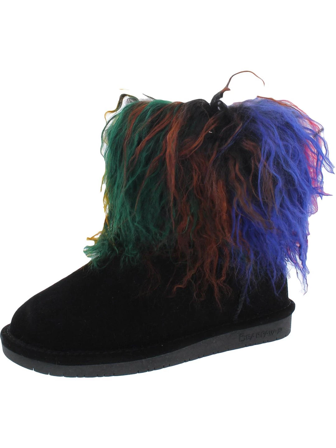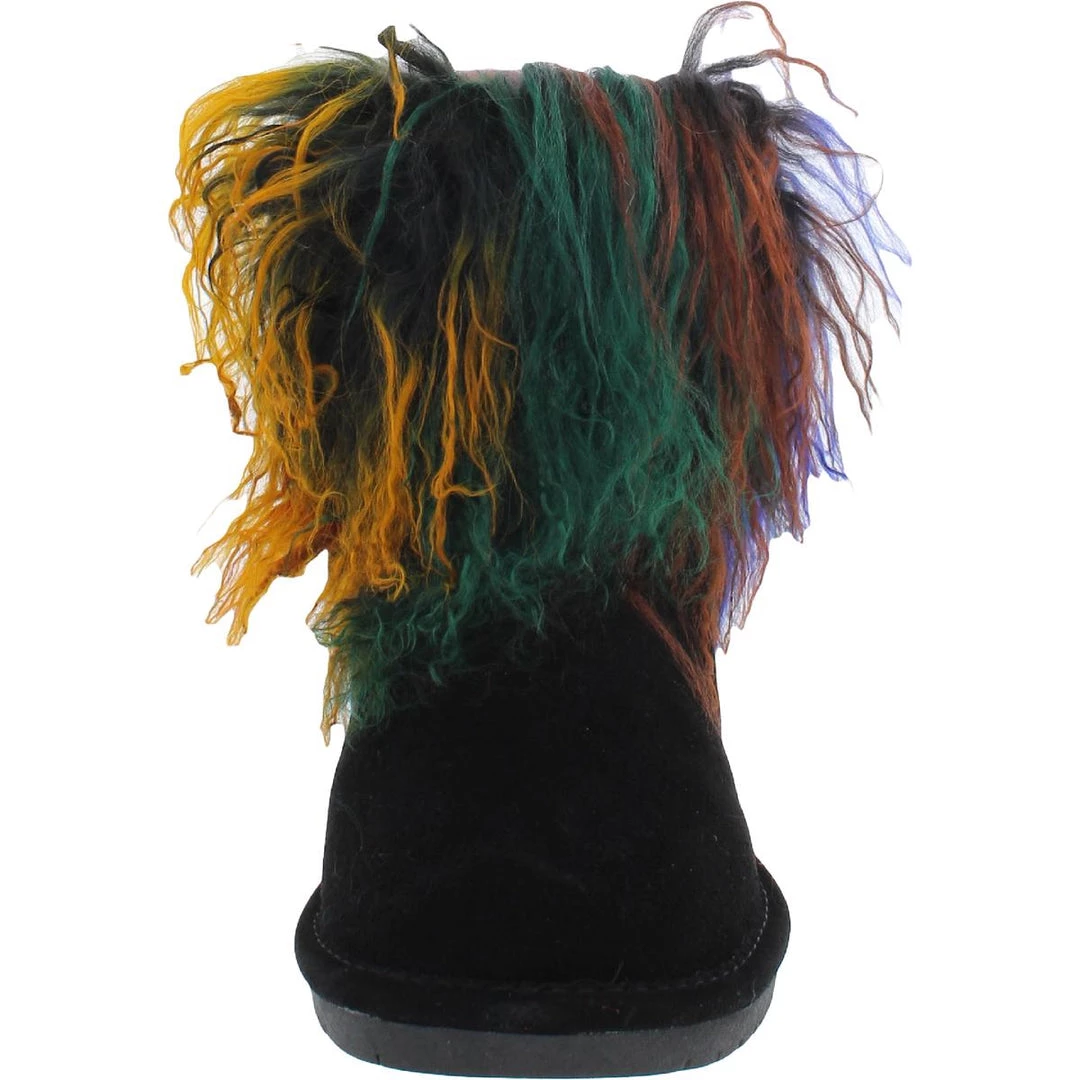 Stay warm this winter with the Boo boot from Bearpaw. It’s made of suede uppers with curly lamb hair cuff and features a wool blend lining and a sheepskin footbed. This shoe also features rubber outsole . The shaft measures at 7″ with an opening circumference of 16″.