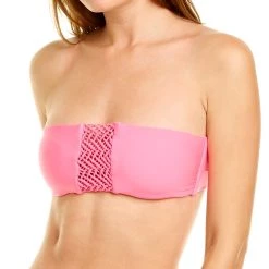 - Erika Bandeau Top In Pink With Macramé Front, Removable Soft Cups, And Removable Halter Straps